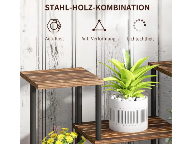 ● Metallrahmen und solider Holzboden der Pflanzentreppe widerstehen Rissen und Verformungen