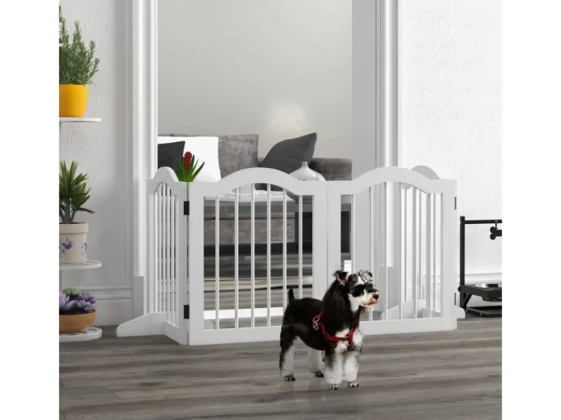 PawHut Absperrgitter mit 2 Stützfüßen und 4 Paneelen