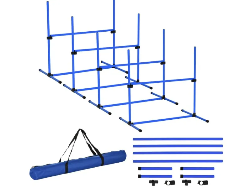 Haben Sie einen lebhaften Hund, der gefordert und gefördert werden möchte? Dann bietet ihm dieses großartige Agility-Set von PawHut die ideale Abwechslung. Das 4er-Set besteht aus 2 Hürdenstangen, 2 Slalomstangen und 4 Bodenstangen: hervorragend, um mit Ihren Vierbeinern in die Welt des Agility-Trainings einzusteigen. So stärken Sie nicht nur die Bindung zwischen Ihnen und Ihrem Tier, sondern fördern auch spielerisch die Gesundheit Ihrer Fellnase.