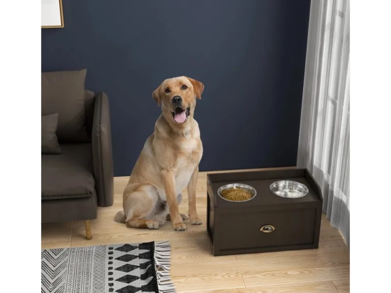 PawHut Hundenapf 2 x 2L Futternapf Erhöht mit Schublade