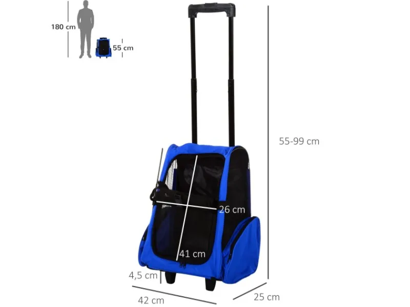 PawHut Hundetrolley Transporttasche für Tiere Trolley 2-in-1 Blau 42 x 25 x 55cm