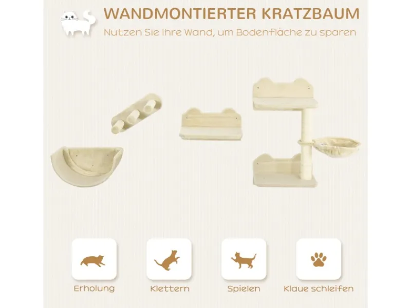 ● Neutrale Farbtöne des Wandkratzbaums passen sich leicht der bestehenden Einrichtung Ihres Zuhauses an