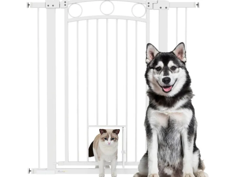 ● Integrierte Katzentür des Treppenschutzes ist vorteilhaft für Haushalte mit mehreren Haustieren