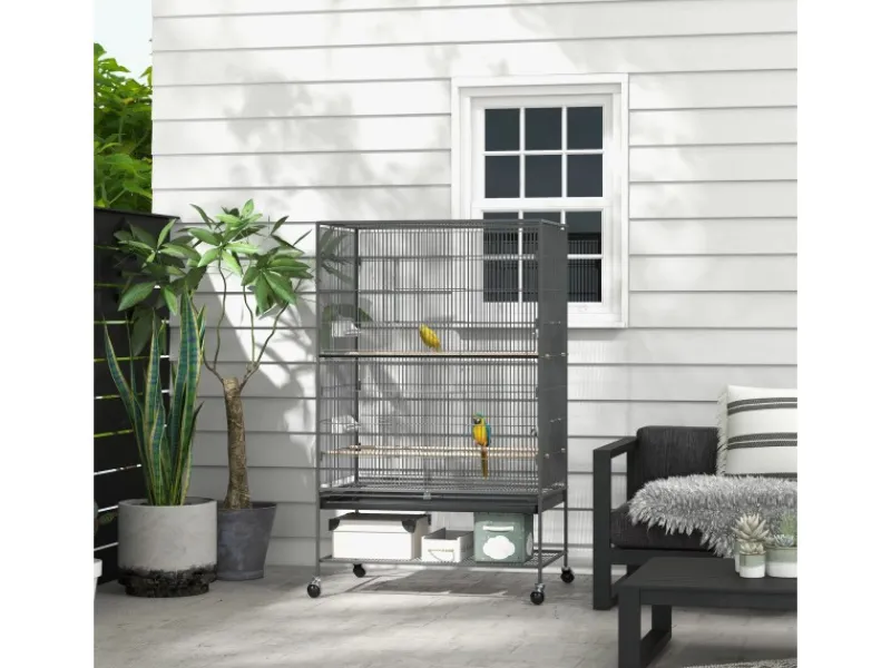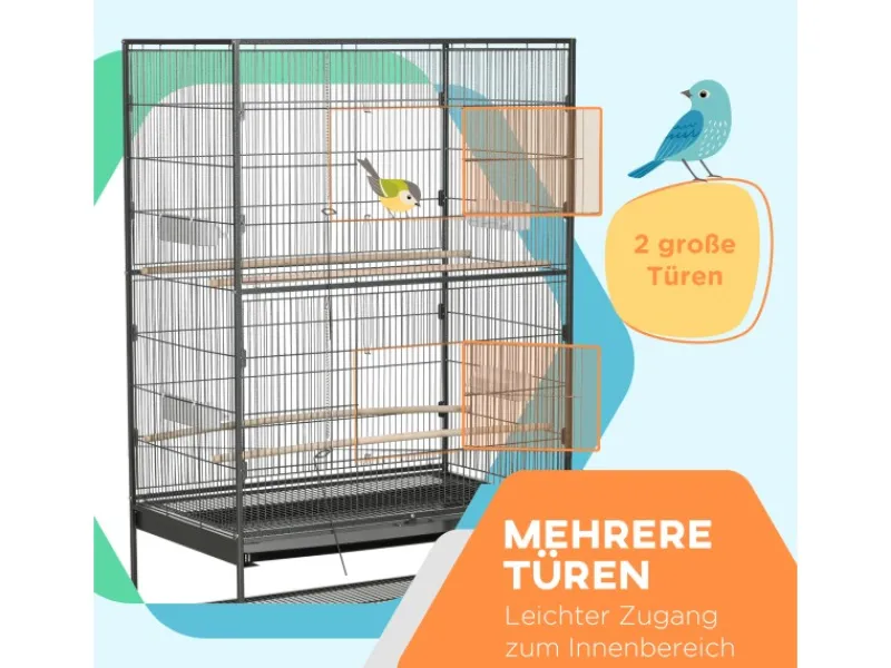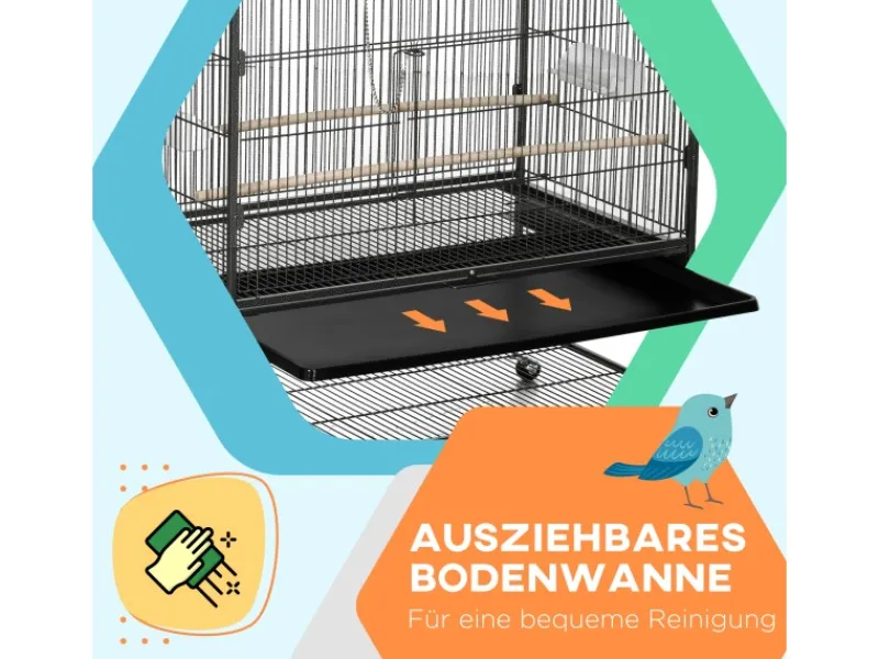 PawHut Vogelkäfig mit Sitzstangen Ablage Bodenwanne