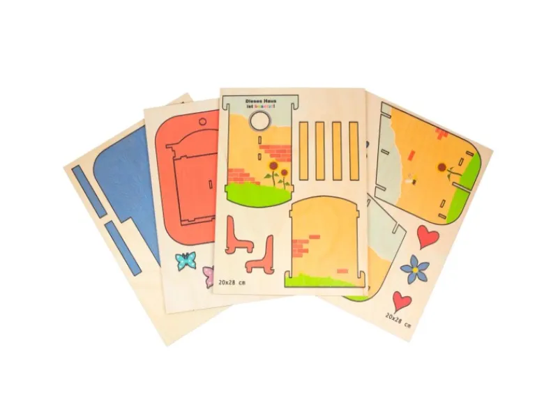 Die Laubsägevorlage von Pebaro bietet eine kreative Möglichkeit, ein eigenes Vogelhaus zu gestalten. Die Vorlage besteht aus vier DIN-A4 Platten, auf denen die Sägelinien für das Vogelhaus bereits vorgedruckt sind. Nach dem Aussägen der Teile lässt sich das Vogelhaus einfach zusammenbauen.