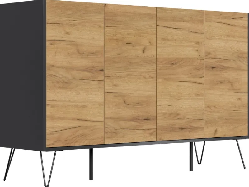 Maße und Lieferumfang: Sideboard Industrial P 155 cm mit 4 Türen (B x H x T): 155 cm x 93,6 cm x 42 cm