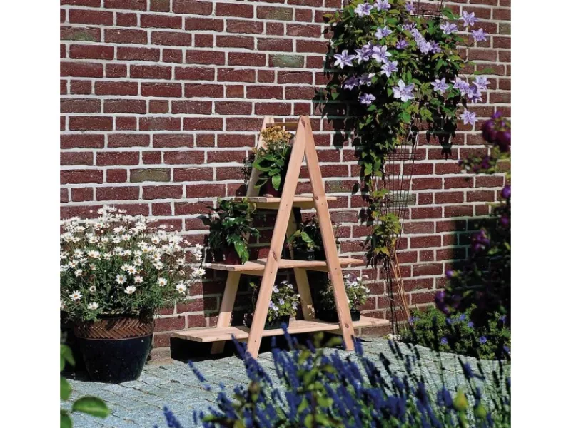 Die große Ausführung der Blumenleiter von Promadino verfügt über drei Etagen und bietet damit noch mehr Platz für Ihre Blumen. Massives Kiefernholz, unbehandelt. Maße: Länge 101 cm x Breite 31 cm x Höhe 112 cm. Gewicht ohne Verpackung: 8,1 kg