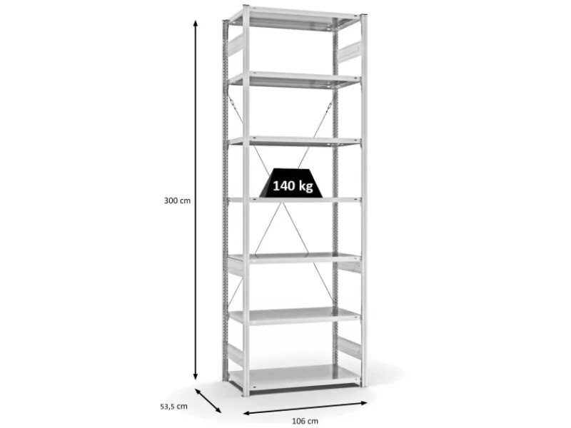 Das Regal ermöglicht zudem eine flexible Anpassung der Regalböden, indem sie schraublos in Abständen von 25 mm in der Höhe verstellt werden können. Die schnelle Steckmontage erleichtert die einfache und unkomplizierte Einrichtung des Regalsystems.
