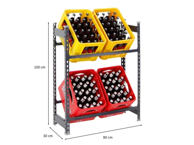 Getränkekistenregal aus Metall mit 2 Ebenen, 100 kg Traglast pro Ebene & Platz für 4 Getränkekisten