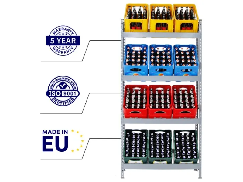 Das Regal ist EU-gefertigt und hat eine ISO 9001 zertifizierte Produktion