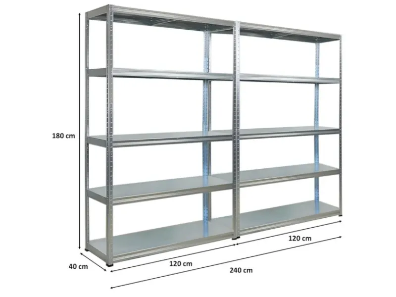 Der Lastregal SLIM EAGLE Mega Deal von PROREGAL ist ein Allzweckmetallregal Kombination. Mit einer Fachbodenlast von 130kg, einer Höhe von 180cm und einer Breite von jeweils 60-120cm ist der Mega Deal für einfache Anwendungsfälle in der Werkstatt, der Garage bis hin zum Büro oder im Haushalt bestens geeignet.