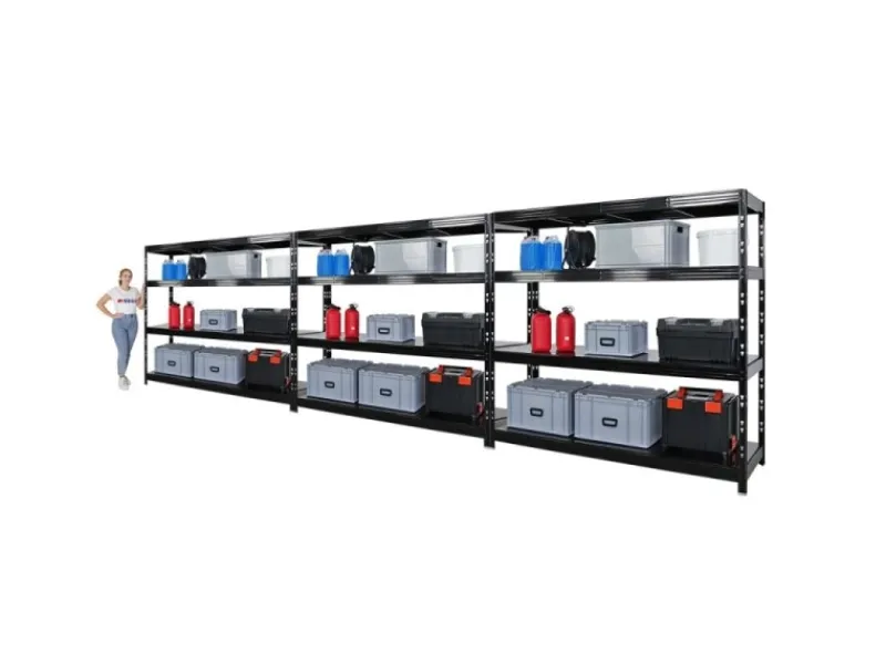 Das Schwerlastregal ist 180 cm hoch, 200 cm breit und 60 cm tief. Die Farbe ist Schwarz