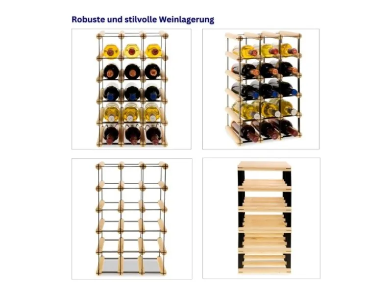 Mit dem VINOTECA MOD METAL holst Du dir nicht nur ein praktisches Weinregal nach Hause, sondern auch einen echten Hingucker, egal wo Du es platzierst. Ob im Wohnbereich, in der Gastronomie oder im Handel – dieses originelle Regal verleiht jedem Raum eine edle und dekorative Note.Hergestellt aus hochwertigen Materialien, vereint das VINOTECA MOD METAL schlichte Eleganz mit einem interessanten Design zu einem erschwinglichen Preis. Deine Weinflaschen werden so gelagert, dass der Wein seine Qualität bewahrt und jederzeit genussbereit ist. Diese einzigartige Kombination verleiht Ihrem Raum einen Hauch von rustikalem Charme und zeitgemäßem Stil.Perfekt für Weinliebhaber jeden Kalibers bietet das VINOTECA MOD METAL eine sichere und stilvolle Aufbewahrungsmöglichkeit für deine Weinsammlung. Von Wohnräumen über Speisekammern bis hin zu Kellern und sogar Weinläden – diese vielseitigen Regale passen nahtlos in jede Umgebung.Die einfache Selbstmontage und die mitgelieferte Montageanleitung machen die Installation zum Kinderspiel und sparen dir wertvolle Zeit. Jedes Regal wird ohne Inhalt geliefert, damit du deine persönliche Auswahl an edlen Tropfen stilvoll präsentieren kannst.
