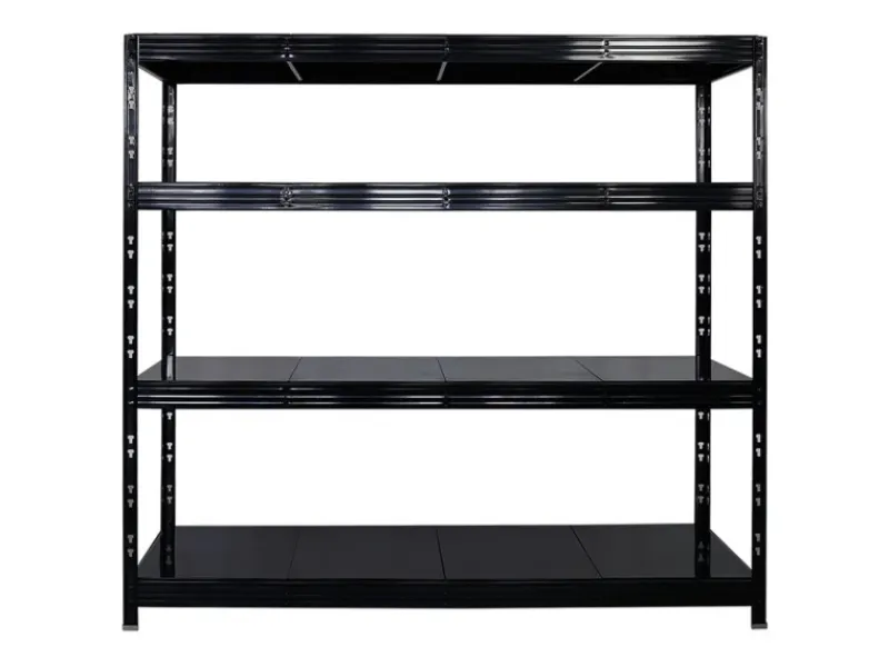 Das Schwerlastregal ist 180 cm hoch, 200 cm breit und 60 cm tief. Die Farbe ist Schwarz