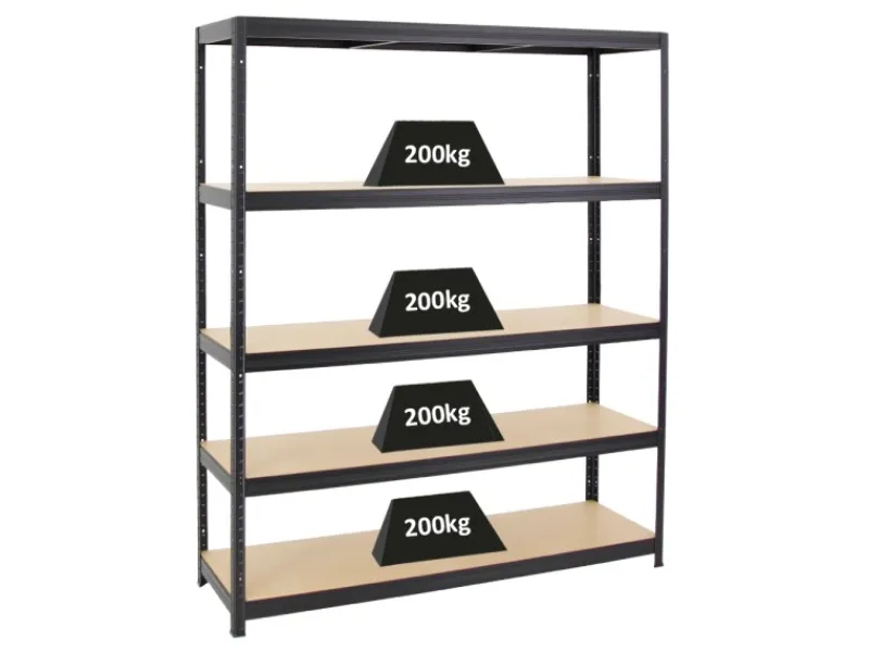 5 Fachböden aus MDF-Holzplatten mit einer Traglast von jeweils 200 kg & einer Stärke von 8 mm