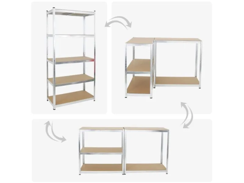 Das Metall ist pulverbeschichtet, um eine lange Lebensdauer sicherzustellen und entgratet, um unangenehme Schnittkanten zu beseitigen. Der Aufbau ist einfach und erfolgt durch Steckmontage mit dem Easy-Slide-System. Es genügt ein Gummihammer. Um dem Schwerlastregal zusätzliche Stabilität zu geben, kann das Regal an der Wand verschraubt werden. Auch die Verbindung von mehreren Regalen ist möglich. Darüber hinaus kann das Regal in zwei Werkbänke umfunktioniert werden. Hierfür lassen sich die vertikalen Streben in der Mitte teilen, um so zwei separate Werktische bauen zu können.