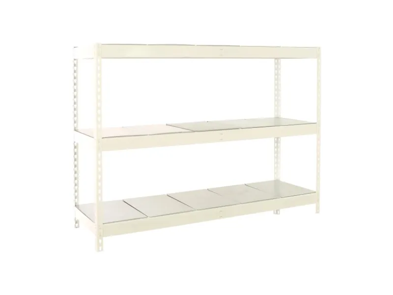 Das Metall ist pulverbeschichtet, um eine lange Lebensdauer sicherzustellen und entgratet, um unangenehme Schnittkanten zu beseitigen. Das Metallprofil der Vertikalstreben ist belastbarer als viele im Handel erhältliche Schwerlastregale.