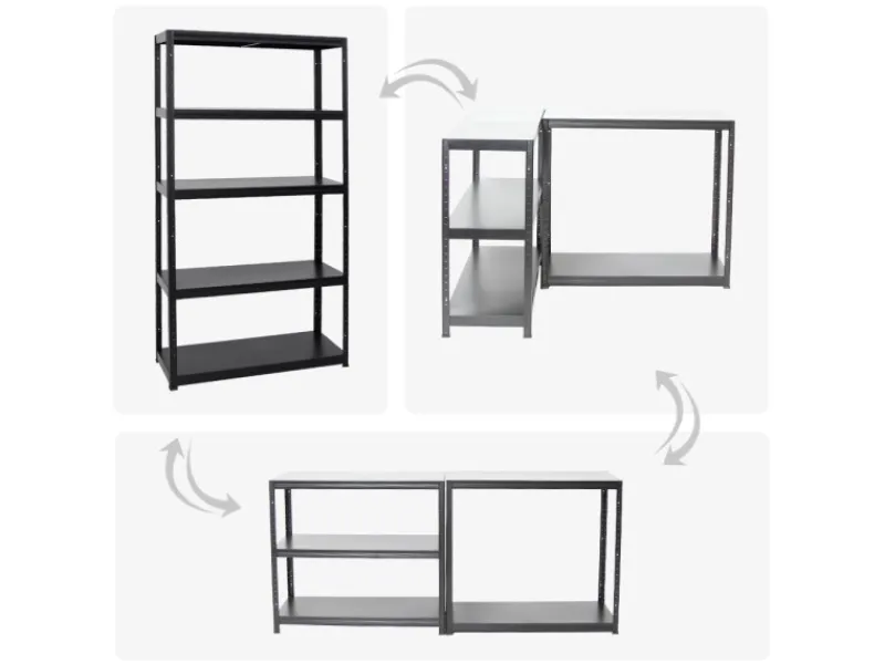 Der Aufbau ist einfach und erfolgt durch Steckmontage mit dem Butterfly-System. Es genügt ein Gummihammer. Um dem Metallregal zusätzliche Stabiiltät zu geben, kann das Regal an der Wand verschraubt werden. Auch die Verbindung von mehreren Regalen ist möglich. Selbstverständlich sind die 5 Fachböden in der Höhe verstellbar. Die Einlegeböden sind ebenfalls aus Metall und daher schmutzresistent und gut waschbar aber gleichzeitig stabil.