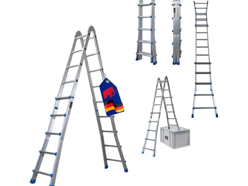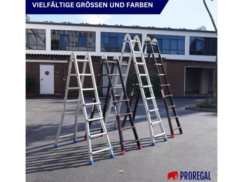 Hergestellt aus hochwertigem Aluminium, bietet die Mehrzweckleiter eine lange Lebensdauer bei gleichzeitig geringem Gewicht, sodass sie einfach transportiert werden kann. Zudem ist sie klappbar, wodurch sie sich platzsparend verstauen lässt – ideal für den flexiblen Einsatz zu Hause, auf Baustellen oder in der Werkstatt. Zusammengeklappt hat sie kompakte Maße von nur 152 cm Höhe, 63 cm Breite und 21 cm Tiefe und findet somit in jeder Ecke ihren Platz.