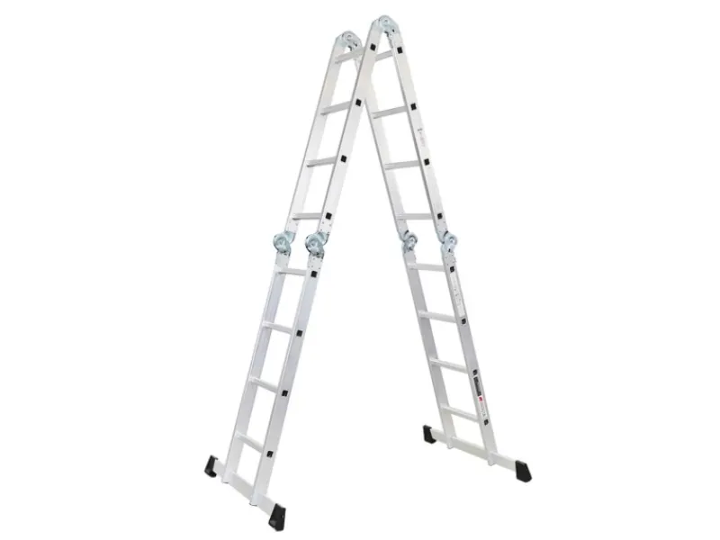 Hergestellt aus hochwertigem Aluminium, bietet die Mehrzweckleiter eine lange Lebensdauer bei gleichzeitig geringem Gewicht, sodass sie einfach transportiert werden kann. Zudem ist sie klappbar, wodurch sie sich platzsparend verstauen lässt – ideal für den flexiblen Einsatz zu Hause, auf Baustellen oder in der Werkstatt. Zusammengeklappt hat sie kompakte Maße von nur 121 x 61 x 26 cm und findet somit in jeder Ecke Platz.