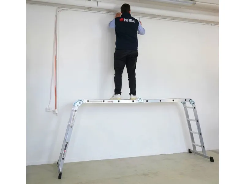 Durch die 2 mitgelieferten Platten kann die Leiter problemlos als Arbeitsgerüst verwendet werden