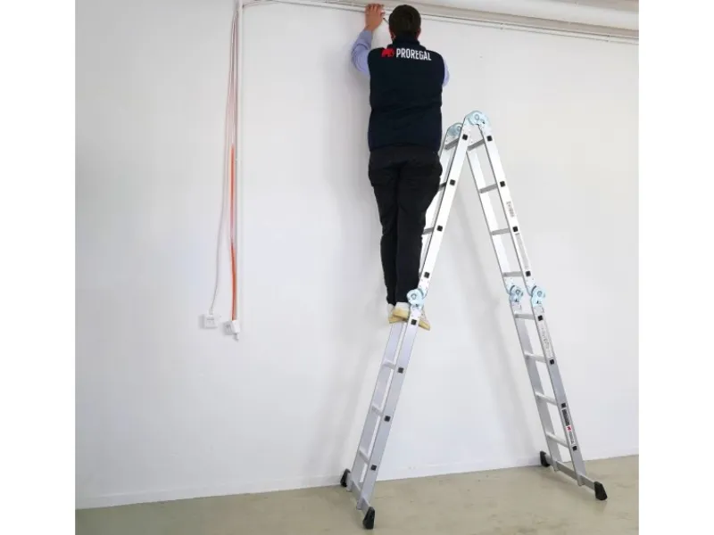Mit der 4-teilig Mehrzweckleiter MULTISTEP hast du eine praktische, sichere und flexible Lösung für zahlreiche Arbeiten – sei es im Haushalt, im Garten oder auf der Baustelle.