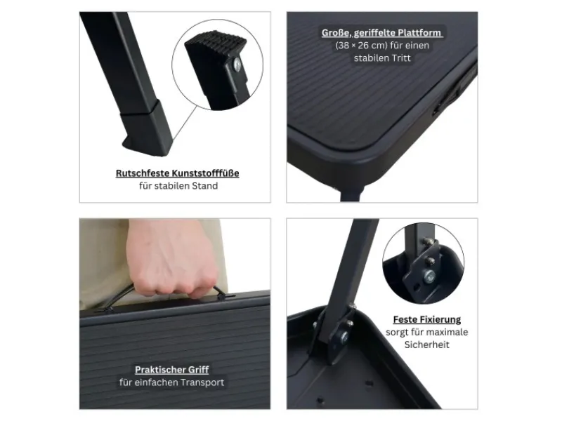 Große, geriffelte Plattform (38 × 26 cm) für einen stabilen und sicheren Tritt