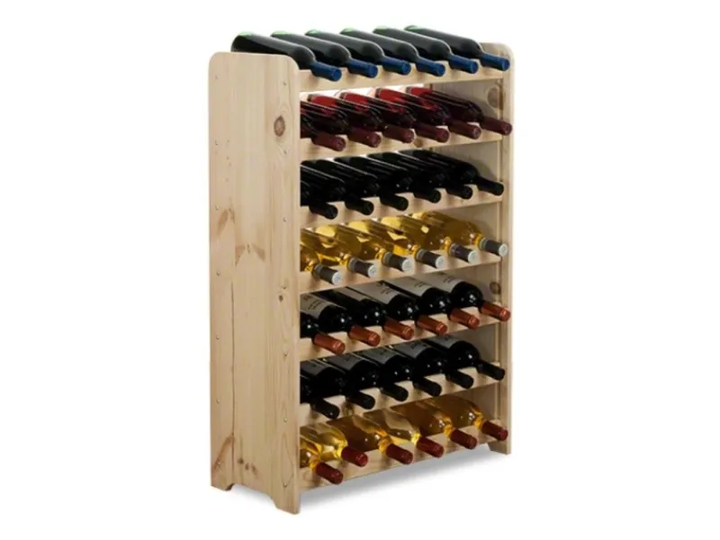 Das Weinregal besteht aus massivem Kiefernholz, was eine langlebige Lagerung gewährleistet