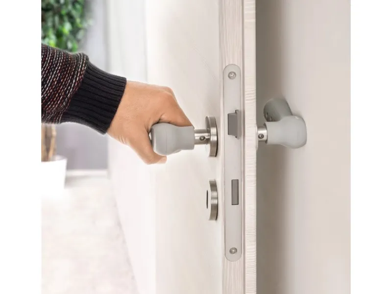 Der Reer Türgriffschutz HandleGuard verhindert schmerzhafte Stoßverletzungen an Innen-Türgriffen und schützt gleichzeitig Wände, Tapeten und Möbel vor Beschädigung durch unbeabsichtigtes Türaufschlagen. Der Türgriffschutz besteht aus einem weichen, flexiblen Silikon-Kunststoff und gewährleistet so einen optimalen Halt, eine angenehme Haptik und einfache Reinigung. Simpel in der Montage bietet der Reer Türgriffschutz HandleGuard einen zuverlässigen Rundumschutz vor Kopfverletzungen, gerade bei spielenden Kindern oder schmerzhaften Stoßverletzungen im Rumpf- oder Armbereich bei Erwachsenen. Die vollständige Ummantelung des Türgriffs sorgt für optimale Sicherheit. Der Reer Innen-Türgriffschutz Handleguard ist mit den meisten gänigen Türgriffen kompatibel (ø: ca. 2 cm x ca. 13 cm).