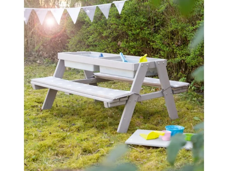 Robuste, wetterfeste Sitzgarnitur in Grau aus Massivholz für Kinder von 12 Monaten bis 8 Jahren