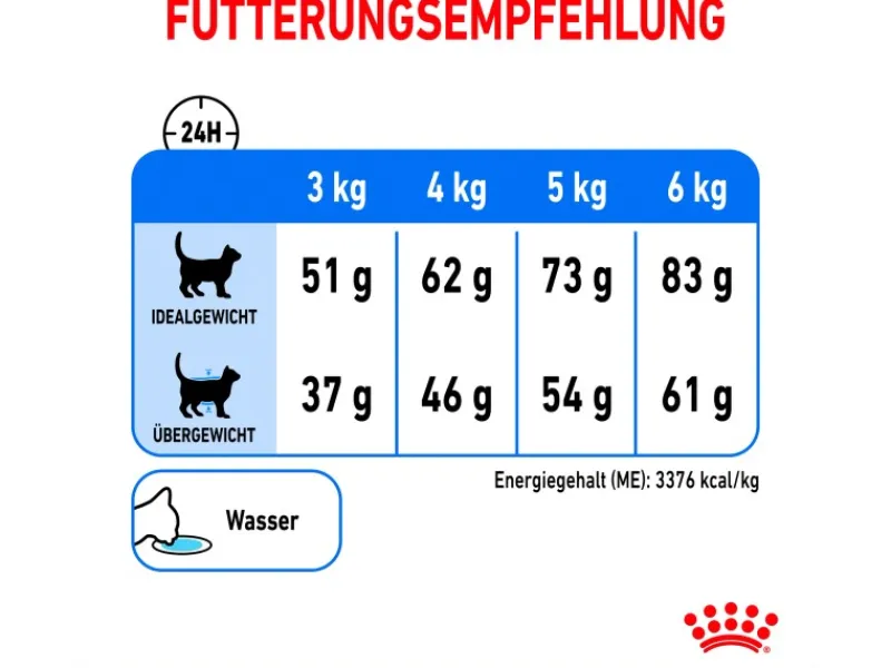 Royal Canin Light Weight Care ist mit L-Carnitin angereichert, welches den Fettstoffwechsel anregt. Es hat einen hohen Protein- und einen niedrigen Fettgehalt – das perfekte Verhältnis zum Erhalt der Muskelmasse bei gleichzeitiger Begrenzung der Gewichtszunahme. So wird ein gesundes Gewicht unterstützt. Außerdem sind eine angemessene Mahlzeitenroutine und regelmäßige Bewegung empfehlenswert.