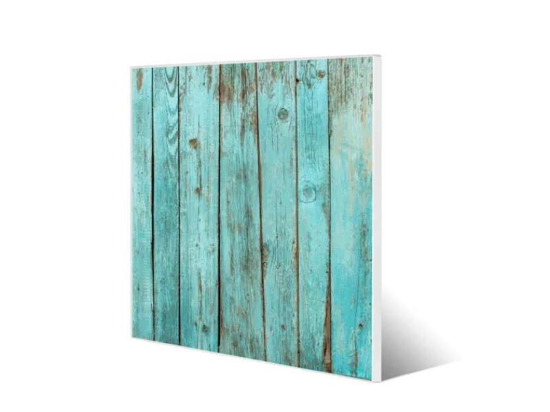 Das Motiv Blaues Holz wird mit einem Schutzlaminat überzogen und ist lösungsmittelfrei.
