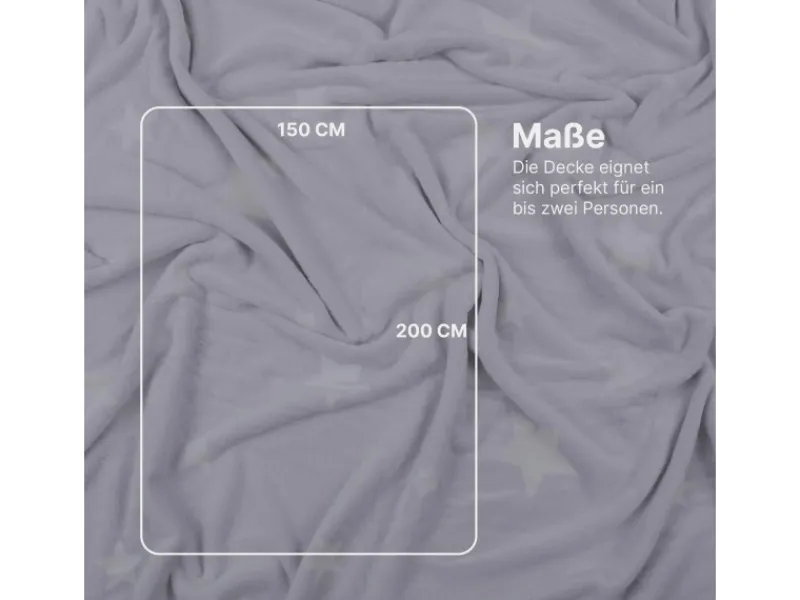Mit großzügigen Maßen von 150×200 cm bietet diese Kuscheldecke die perfekte Größe, um dich komplett einzuhüllen und dir ein Gefühl von Geborgenheit zu schenken. Egal, ob du alleine entspannen möchtest oder die Decke zu zweit genießt – sie ist geräumig genug, um ein Höchstmaß an Komfort zu gewährleisten.