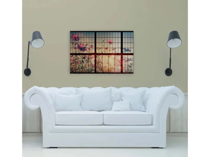 Sale Bricoflor Wandbild Fensterblick In Garten Leinwandbild Mit Blumenwiese In Sonnenuntergang Deko Bild Für Schlafzimmer In 90 X 60 Cm