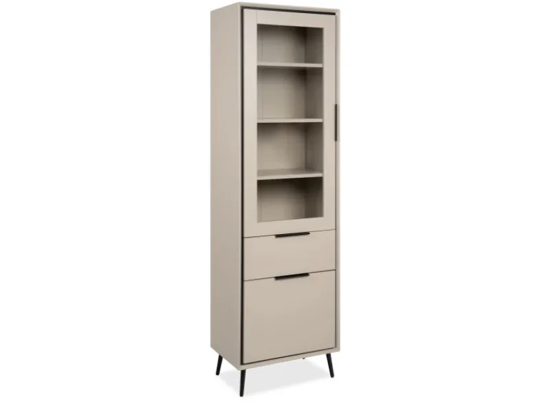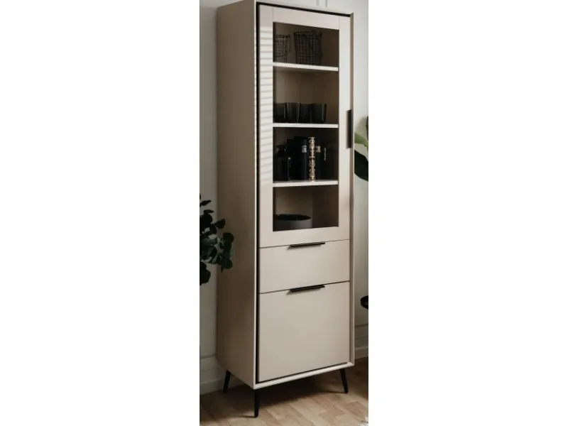 Trendige Vitrine (BxH 60 x 200 cm) in Sand mit schwarzer Absetzung