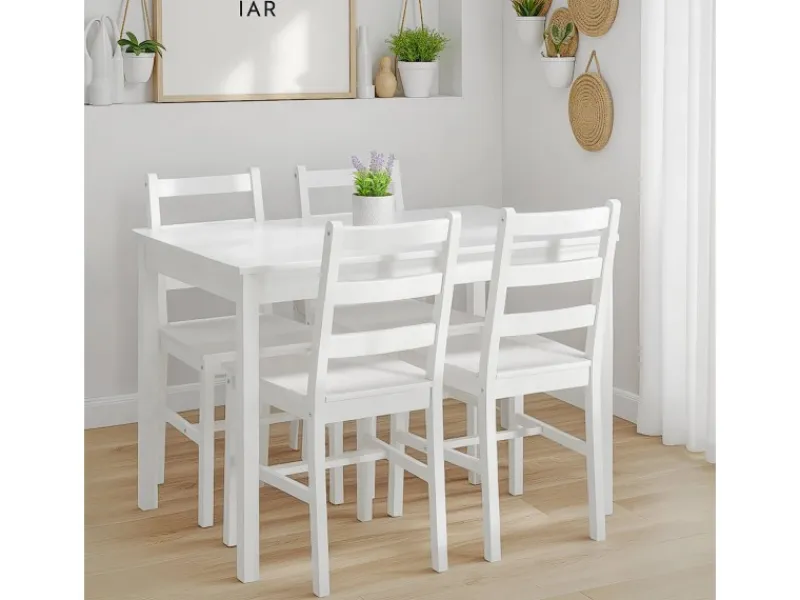 Tisch und Stühle aus massivem Kiefernholz, weiß lackiert