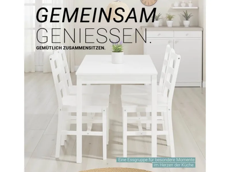 inklusive 4 massiver, weiß lackierter Stühle aus Kiefernholz