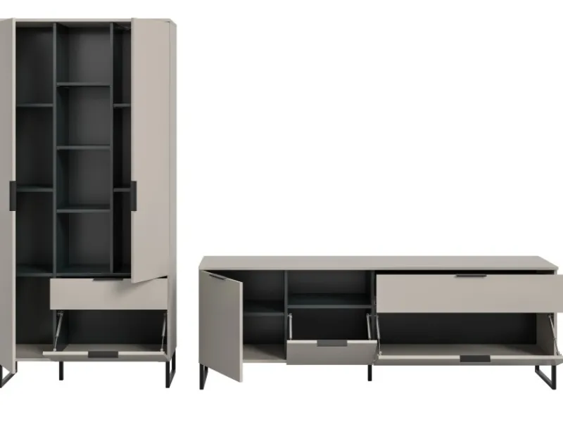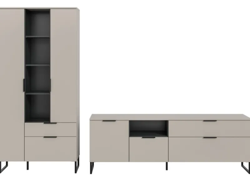Wohnwand „Morena“ von Inn.Furn, 2-teilig, 290 x 192 cm, Kaschmir & Schwarz