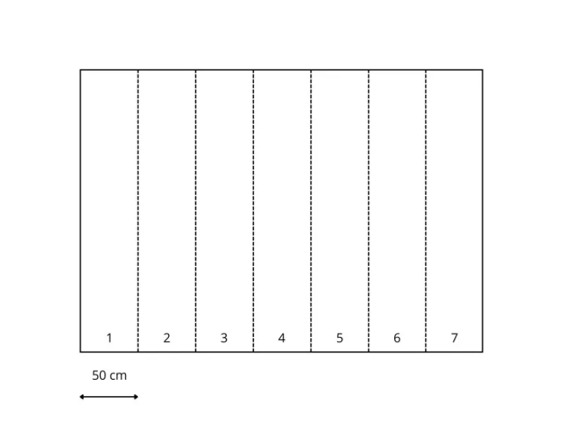 Die Maße dieser Fototapete sind 350 x 250 cm (Breite x Länge). Diese Fototapete besteht aus 7 Paneelen mit einer Breite von 50 cm.