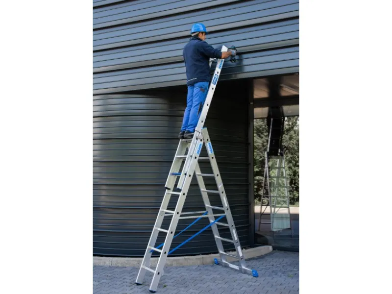 Das ausschiebbare Leiterteil ist dank der Krause Trigon-Traverse einzeln entnehmbar und separat nutzbar.