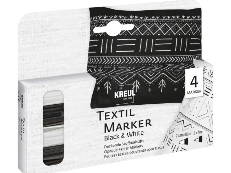 Set beinhaltet vier KREUL Textil Marker Opak Schwarz und Weiß