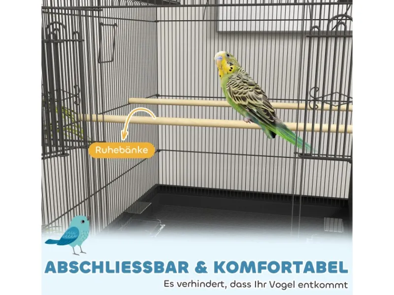 ● Sitzstangen des Vogelkäfigs bieten komfortable Ruheplätze