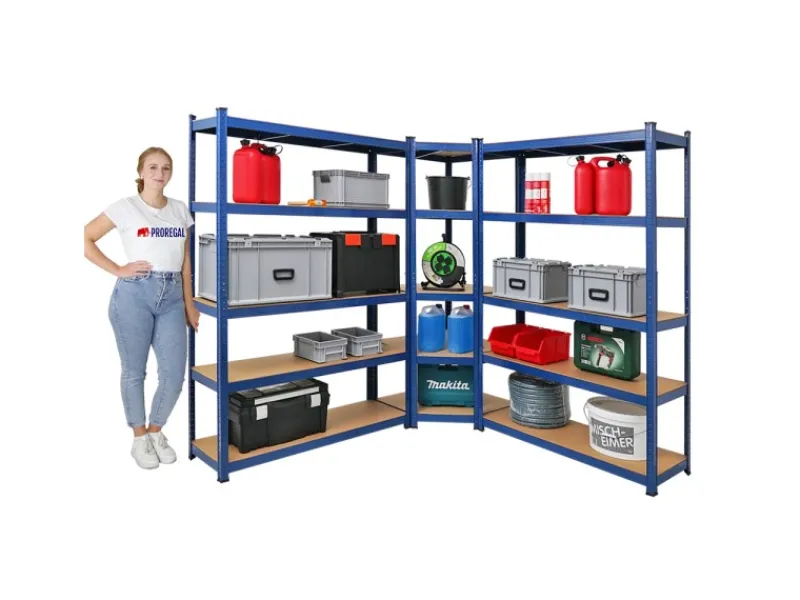 Mit dem Spar-Set bestehend aus 1 Eckregal und 2 Schwerlastregalen Ordnung schaffen & Geld sparen