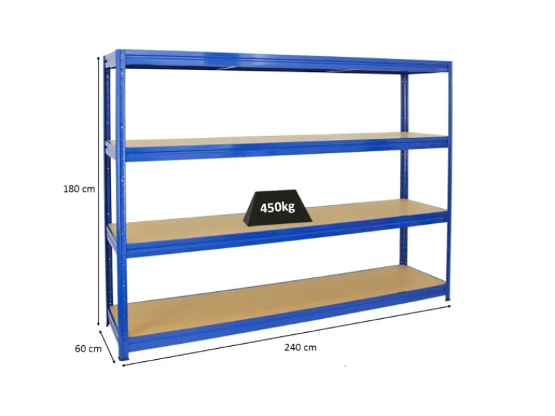 Das Schwerlastregal ist 180 cm hoch, 240 cm breit und 60 cm tief