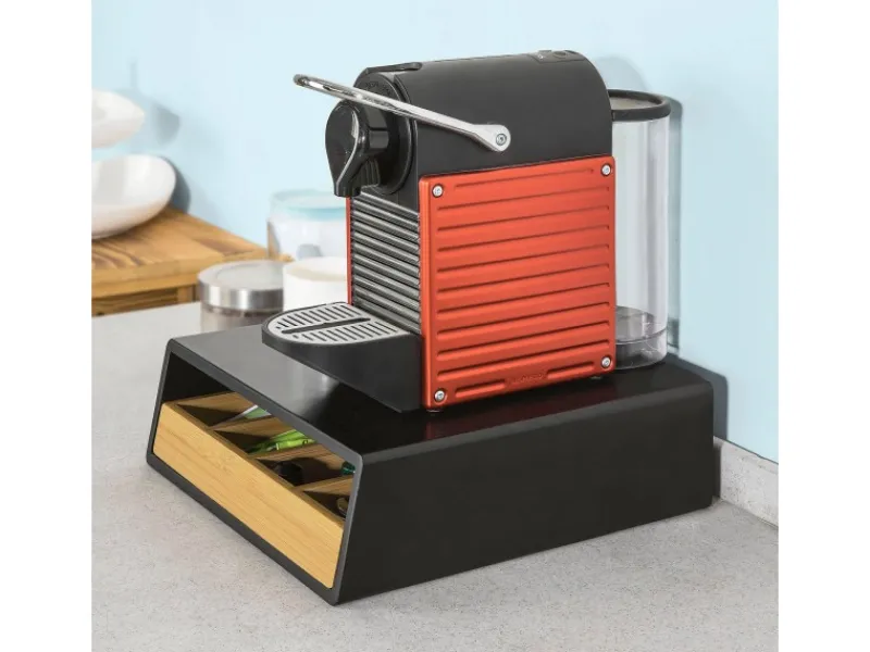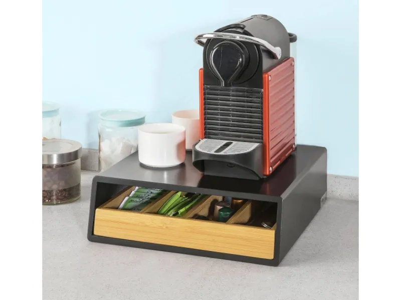Diese Kaffeekapsel Box bietet eine praktische Abstellfläche für die Kaffeemaschine oder den Teekocher.