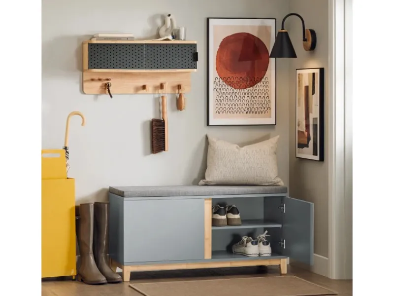 Dank des Sitzkissens können Sie sich Ihre Schuhe bequem an- und ausziehen.