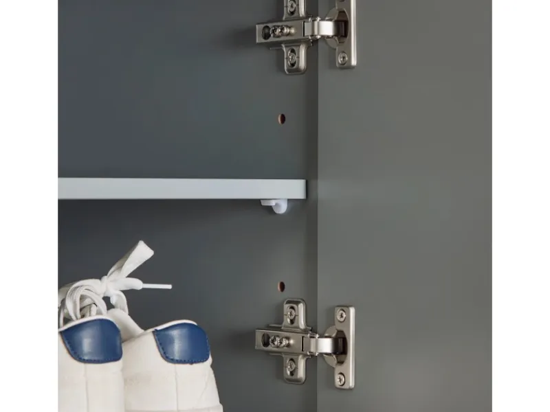Mit 4 Fächer und 2 Einlegeböden in drei Höhen verstellbar: ideal zum platzsparenden Verstauen Ihrer Schuhe und vieler weiteren Gegenstände.