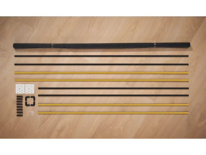 Lieferumfang: Zuschneidbarer Anklipsrahmen aus Fiberglas – selbstklebendes Click-System