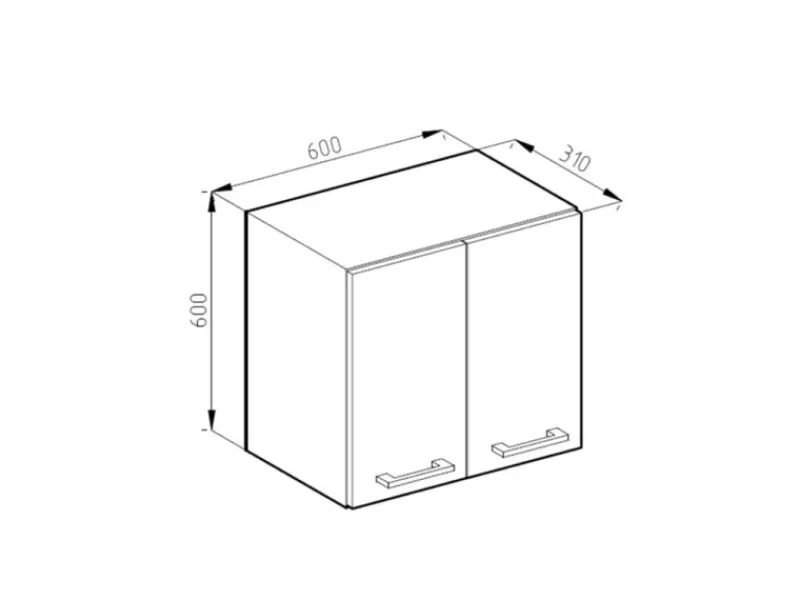 Die Küchen Hängeschränke hat Breite 60 cm, Höhe 60 cm und Tiefe 31 cm