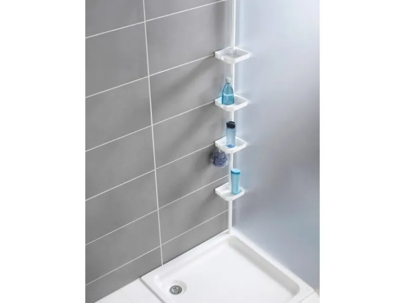 Das moderne Teleskop-Regal ist universell einsetzbar, in der Duschkabine, in der Badewannenecke, oder im Badezimmer. Es bietet mit vier Ablagekörben genügend Abstellmöglichkeiten für Ihre Badutensilien. Die Ablagen verfügen alle über strukturierte Böden und Ablaufschlitze.